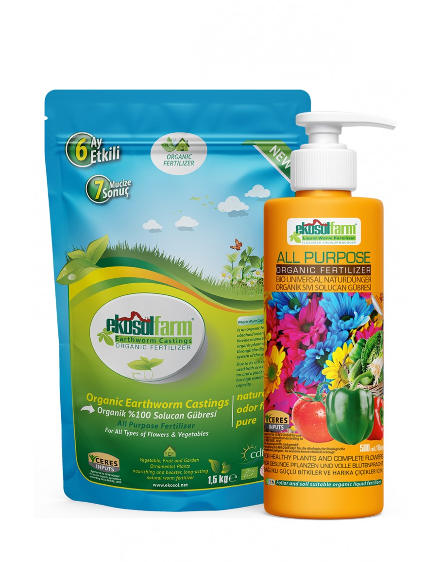 Türkiyenin en büyük solucan gübresi üretim kuruluşu Ekosol Tarım A.Ş. tarafından hobi bahçeciliğinde kullanımına uygun, Türkiye'nin ilk %100 Organik Sertifikalı güçlü bir bitki besleyicidir.